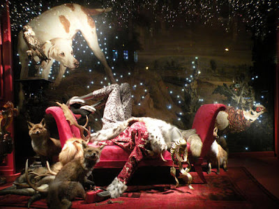 Alber Elbaz, head designer at Lanvin, was chosen to create the christmas windows parisian store Printemps. I just love these windows. Its what I learned to love through my studies at FIDM as a visual communications major. These windows have amazing lighting, which truly makes everything. The props are fantastic and it tells a story. The theme was Noel au Chateau, the famous chateau that Mr and Mrs Lanvin lived in. If you are ever lucky enough to go see these windows: