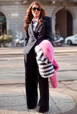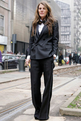 Editor at large of Vogue Japan, Anna Dello Russo is a leader in the fashion world. During menswear fashion week in Milan, she takes on classic looks from Dsquared and commes de garcon. I love the bow ties and the super feminine accessories.