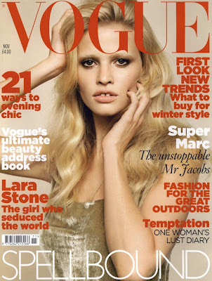 Lara Stone is the the cover girl for the November issue of Vogue UK. It is a beautiful spread that was shot by Alasdair Mclellan with stone wearing amazing neutral tone dresses. The styling was done by Kate Phelan. In the magazine, stone wears Chole dresses. It is also said that she is the next "it" girl for the brand.