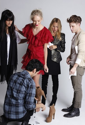Well earlier this week, Rachel Zoe showed her fall collection in NYC. Now seven months pregnant, RZ is doing her last trips to New York and will be missing fashion week as she awaits the birth of a baby boy in Los Angeles. She had many great pieces in the show. But it has been causing some sort of controversy. Teen Vogue editor tweeted a photo of an editorial that Zoe styled a few years back of a teen Vogue intern. It was credited as a vintage piece. And next to that editorial was a picture of an almost exact replica of the dress as part of Zoe's new collection. BTW? The girl with the black hair in the second bottom photo is reported to be Rz's new right hand. The new "Brad"? Really?
